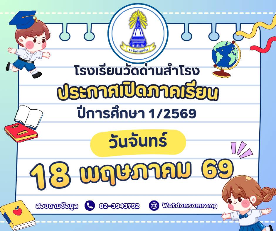 จัดทำเว็บไซต์โดย นายชัชวาลย์ งามขำ ตำแหน่งครูโรงเรียนวัดด่านสำโรง