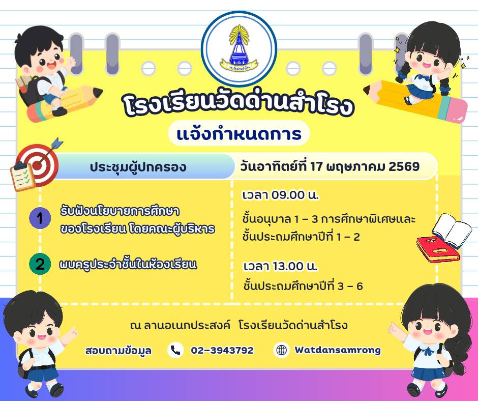 E-mail: watdansamrong.edu@gmail.com Tel : 0-2394-3792 Fax : 0-2394-0858