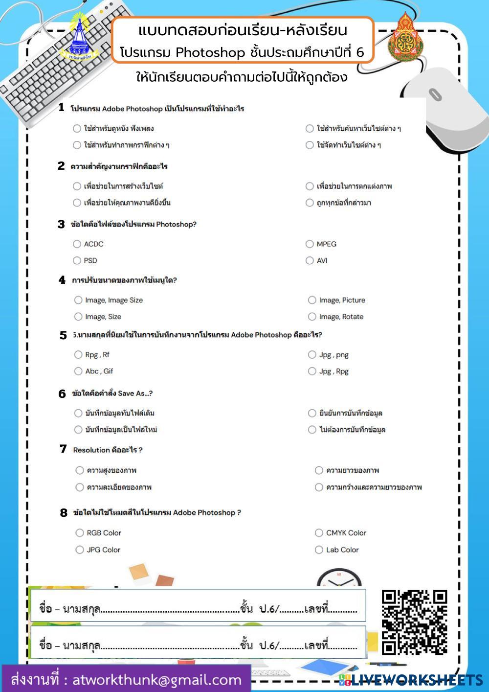 แบบทดสอบก่อนเรียน - หลังเรียน Photoshop